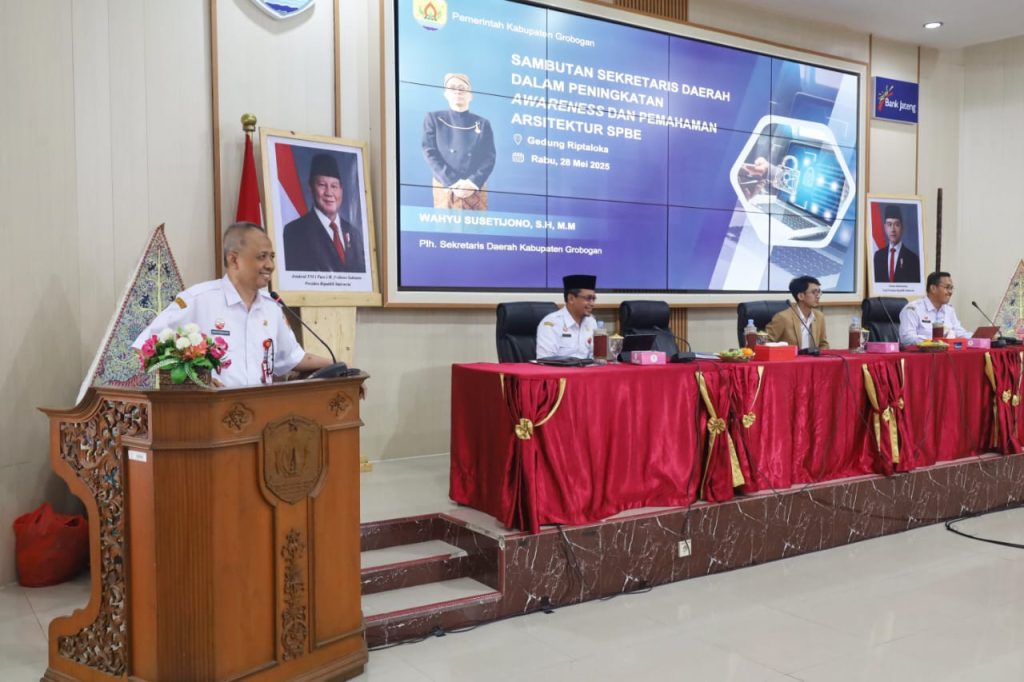 Purwodadi— Di era digital yang bergerak semakin cepat, membangun pemerintahan yang terintegrasi melalui teknologi bukan lagi sebuah pilihan, melainkan sebuah keharusan. Pesan inilah yang disampaikan Plh. Sekretaris Daerah (Sekda) Grobogan, Wahyu Susetijono, saat membuka kegiatan Peningkatan Awareness dan Pemahaman tentang Arsitektur Sistem Pemerintahan Berbasis Elektronik (SPBE) di Gedung Riptaloka, Rabu (28/5/2025). Kegiatan ini menjadi momen penting untuk menyatukan persepsi sekaligus memperkuat komitmen seluruh perangkat daerah agar penerapan pemerintahan digital dapat berjalan secara menyeluruh, solid, dan berkelanjutan— bukan sekadar upaya digital yang terfragmentasi dan tidak saling terhubung. Dalam sambutannya, Plh. Sekda mengingatkan bahwa tanpa pemahaman dan kesadaran bersama, implementasi SPBE justru berpotensi berjalan parsial dan menghambat upaya reformasi birokrasi digital yang tengah didorong. “Saya mengajak kita semua untuk menjadikan kegiatan ini sebagai momentum penyamaan persepsi, peningkatan kapasitas, serta komitmen bersama dalam membangun ekosistem digital pemerintahan yang kuat dan berkelanjutan”, ujarnya penuh harap. Lanjutnya, “Setiap Perangkat Daerah harus mampu menjadi bagian dari sistem yang terhubung dan saling mendukung melalui arsitektur SPBE yang dirancang secara holistik”. Sistem Pemerintahan Berbasis Elektronik merupakan fondasi utama dalam mewujudkan birokrasi yang efektif, transparan, dan akuntabel. Arsitektur SPBE sendiri berfungsi sebagai peta jalan yang mengintegrasikan proses bisnis, data, aplikasi, infrastruktur, serta keamanan di lingkungan pemerintahan. Tanpa adanya arsitektur yang jelas, integrasi tersebut sulit diwujudkan secara optimal. Kepala Dinas Komunikasi dan Informatika Kabupaten Grobogan, Muzakir Walad menambahkan, tujuan utama kegiatan ini adalah membangun pemahaman bersama terkait Arsitektur SPBE, menyelaraskan persepsi sebagai pedoman tata kelola pemerintahan, dan mendukung prinsip pemerintahan yang bersih, efektif, transparan, serta akuntabel. Ia juga memaparkan tren indeks SPBE Kabupaten Grobogan yang menunjukkan perkembangan positif, dari 2,51 pada 2021, naik menjadi 3,37 pada 2022 dan 2023, serta mencapai 3,57 pada 2024. Meski demikian, Kabupaten Grobogan masih memerlukan strategi yang tepat untuk terus meningkatkan indeks tersebut. Melalui kegiatan ini, diharapkan terbentuk pemahaman yang kuat tentang pentingnya SPBE, sekaligus meningkatnya efektivitas dan kualitas layanan publik. Komitmen dari pimpinan perangkat daerah menjadi kunci agar pembangunan digital yang adaptif dan berorientasi pada pengguna dapat terwujud, mendukung reformasi birokrasi secara menyeluruh. Dalam kesempatan yang sama, narasumber dari Digitama Yogyakarta, Pradiptya Setyahadi, menekankan pentingnya integrasi dan interoperabilitas aplikasi antar instansi pemerintah. Ia menggarisbawahi bahwa layanan pemerintahan harus berorientasi pada pengguna (user-centric), bersifat proaktif, personal, dan terpadu sepanjang siklus hidup warga, ‘dari lahir sampai meninggal.’ Menurutnya, komitmen pimpinan—dalam istilahnya digital leader— adalah kunci utama dalam peningkatan indeks SPBE. Lebih jauh, Pradiptya mengingatkan peran krusial seorang digital leader yang mampu memimpin transformasi digital dengan membangun keterampilan digital dalam tim, menyederhanakan proses bisnis melalui teknologi, serta memanfaatkan data untuk pengambilan keputusan strategis yang cepat dan tepat sasaran. Pembentukan Tim Transformasi Digital dan pengembangan aplikasi terintegrasi di lingkungan perangkat daerah sebagai bagian dari strategi yang perlu segera diwujudkan. Penerapan SPBE bukan semata soal teknologi, melainkan sebuah upaya membangun birokrasi yang lincah, responsif, dan transparan dalam melayani masyarakat. Dari Gedung Riptaloka, komitmen terhadap transformasi digital ditegaskan kembali—mendorong langkah-langkah nyata menuju tata kelola pemerintahan yang lebih terintegrasi dan mudah diakses masyarakat. Kegiatan ini menjadi bagian penting dari proses panjang digitalisasi di Kabupaten Grobogan, yang terus diarahkan untuk mendukung layanan publik yang efisien, transparan, dan akuntabel. Dengan kolaborasi lintas perangkat daerah, fondasi menuju pemerintahan digital yang lebih baik pun terus diperkuat. (jsa)